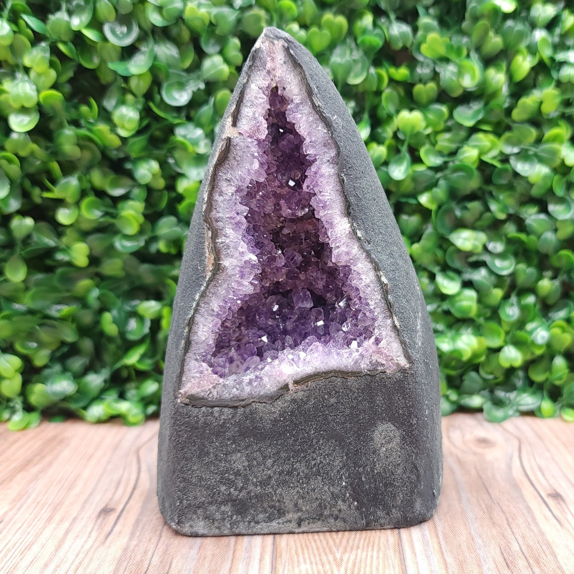 This gorgeous amethyst cathedral would make an excellent addition to a desk space, table, or altar. Amethyst is an excellent stone for meditation work and stress relief.