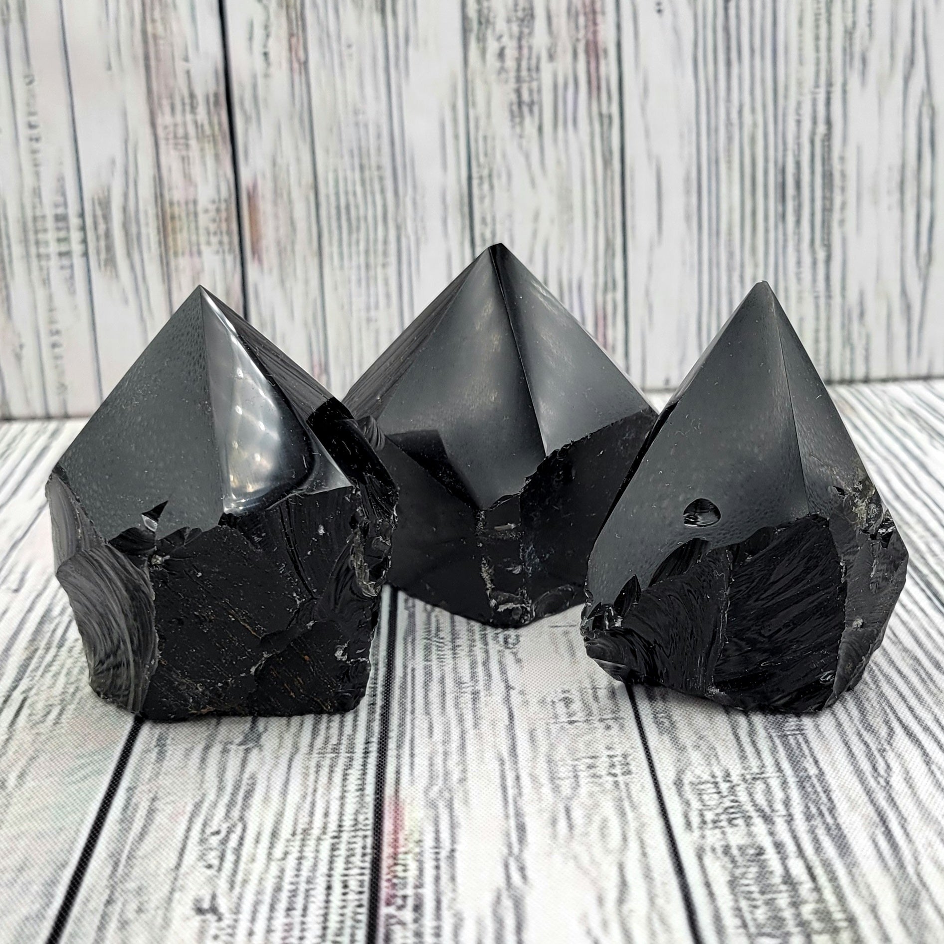 Black Obsidian is a fabulous stone for protection and grounding. These semi-polished points make an excellent addition to an altar space or for use in cleansing a space. Each point weighs between 100-200 grams, size will vary.