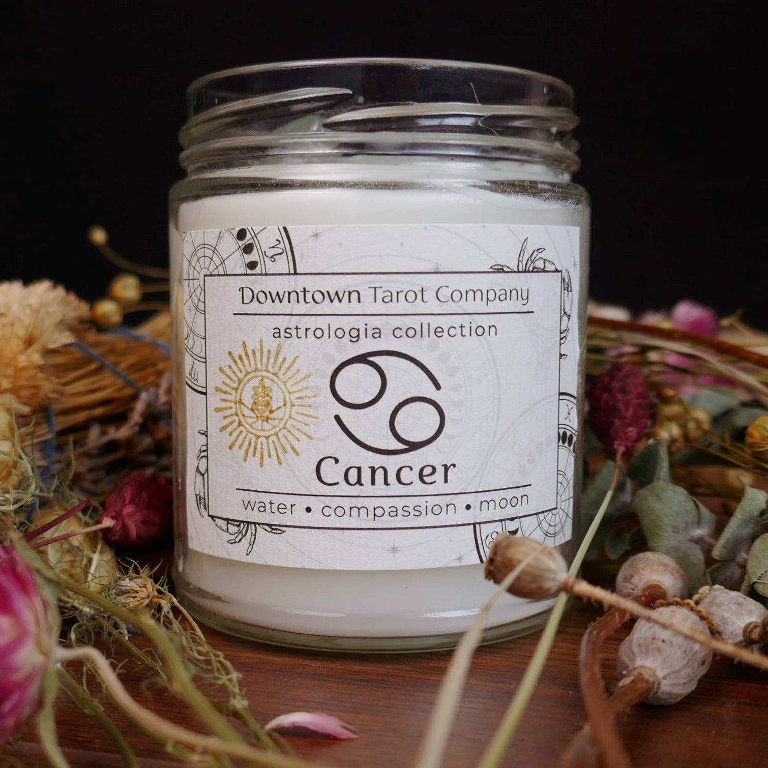 The Astrologia Collection includes an intuitively curated set of zodiac candles hand poured by the Downtown Tarot Company in Michigan. Zodiac Candles are wonderful birthday gifts and are perfect for working with an individuals sun, moon, ascendant, or any other sign in their birth chart.