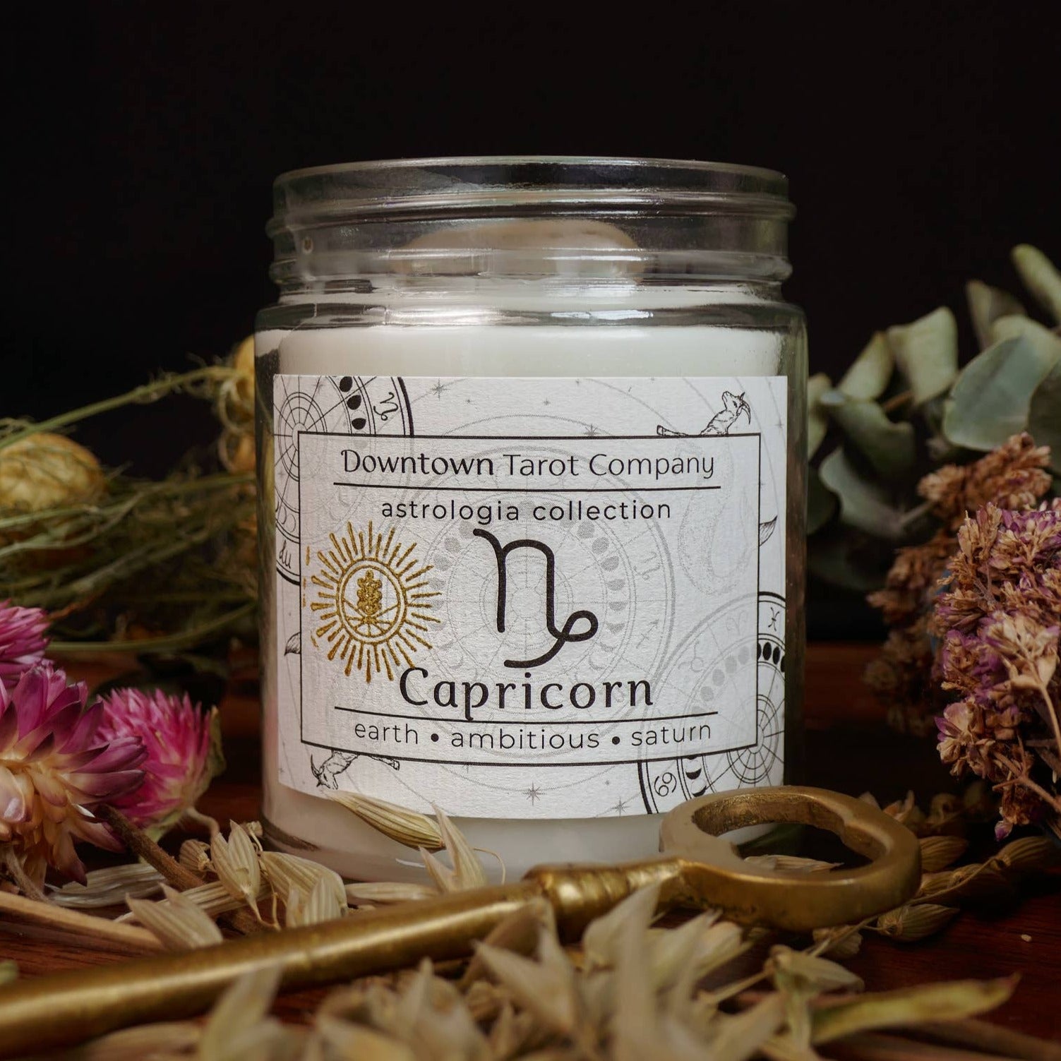 The Astrologia Collection includes an intuitively curated set of zodiac candles hand poured by the Downtown Tarot Company in Michigan. Zodiac Candles are wonderful birthday gifts and are perfect for working with an individuals sun, moon, ascendant, or any other sign in their birth chart.
