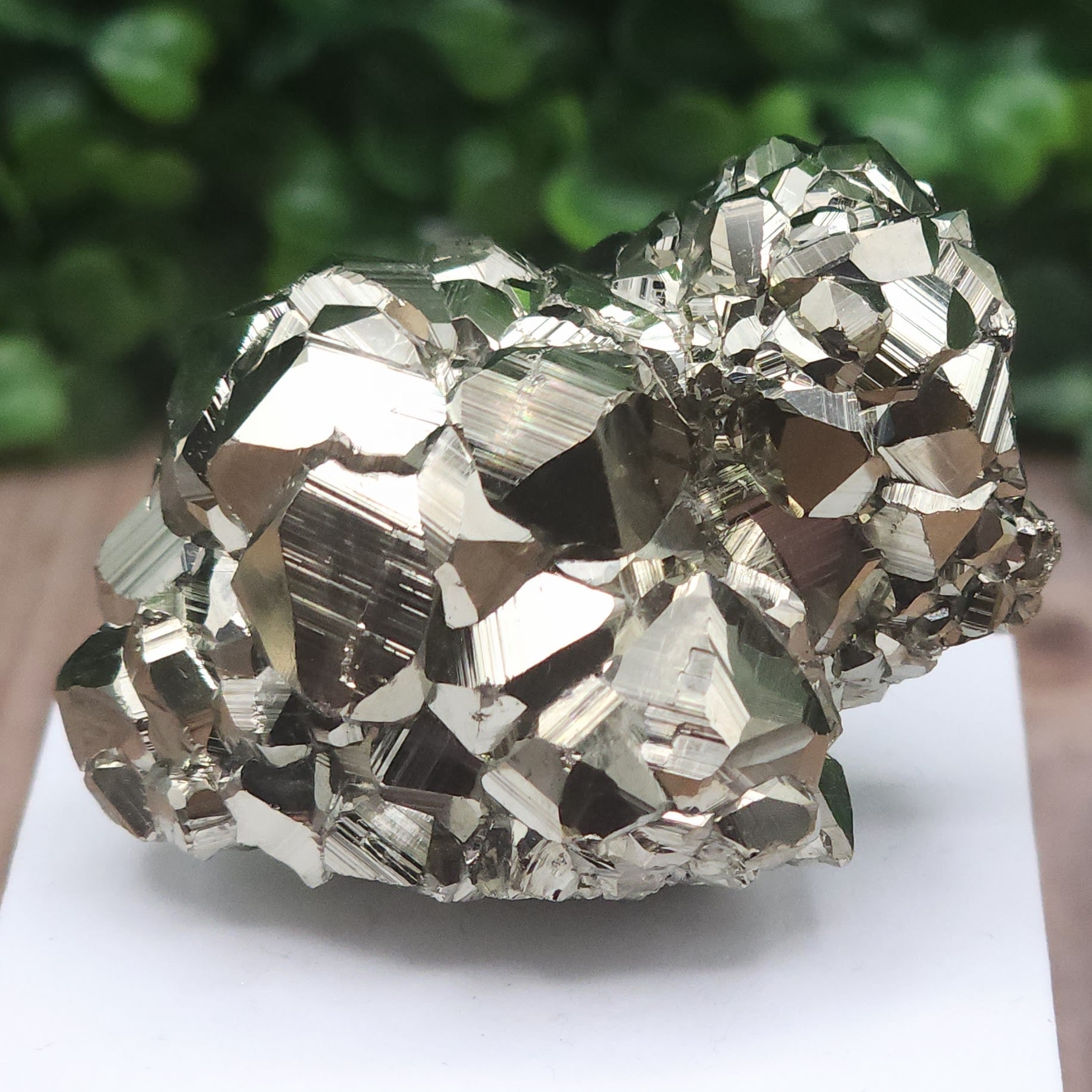 Our collection of Peruvian Pyrite features distinct cubic formations in gorgeous clusters. Each piece in this collection was photographed on the same 2 inch square white surface to help you visualize the size of each piece.