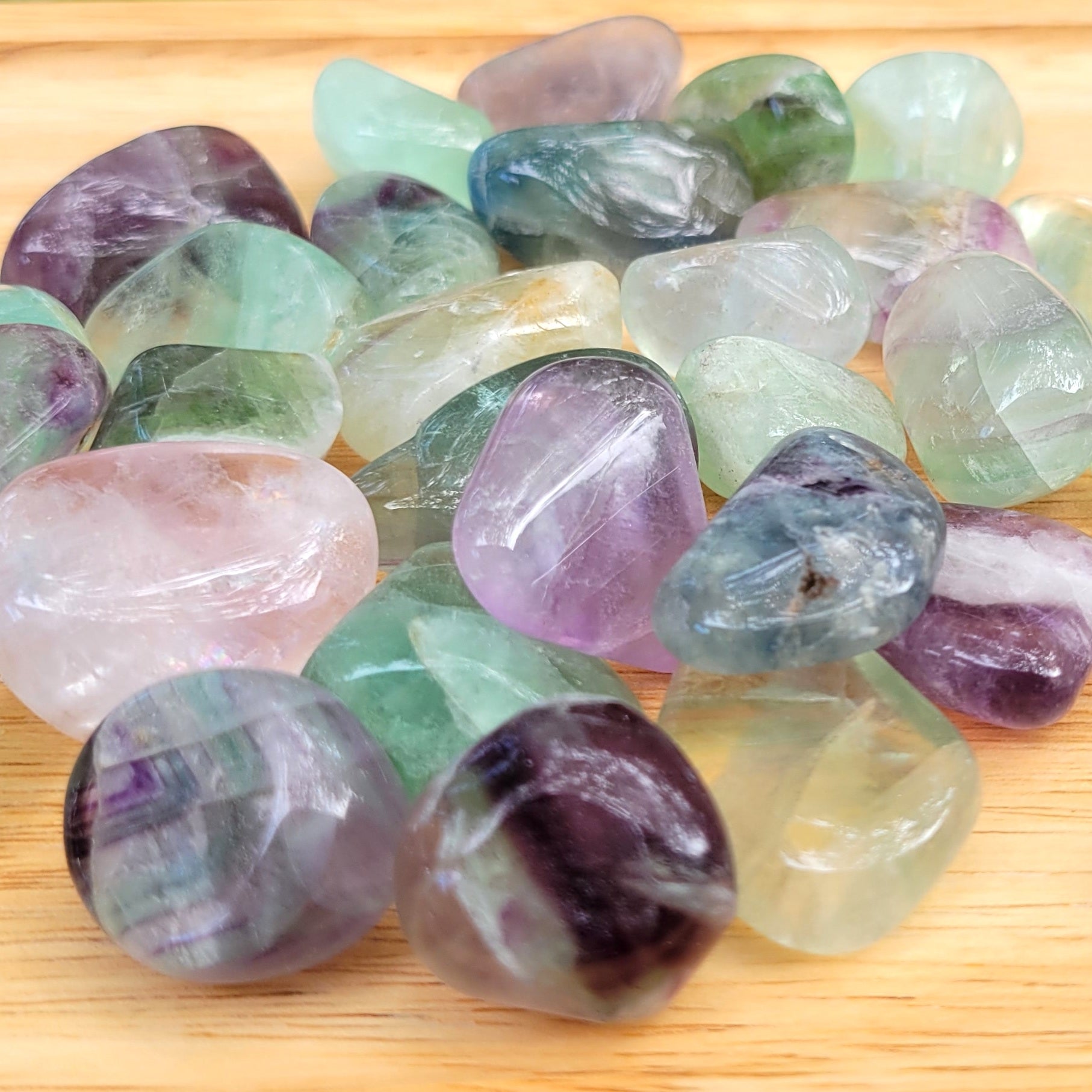 Rainbow Fluorite Tumbled Stone, approximately 0.5-1.5 inches in size. Pieces shown here are representative of what we have available, but may not be the piece sent to you. If you have strong preferences regarding the composition of the stone you receive, please contact us prior to placing your order.