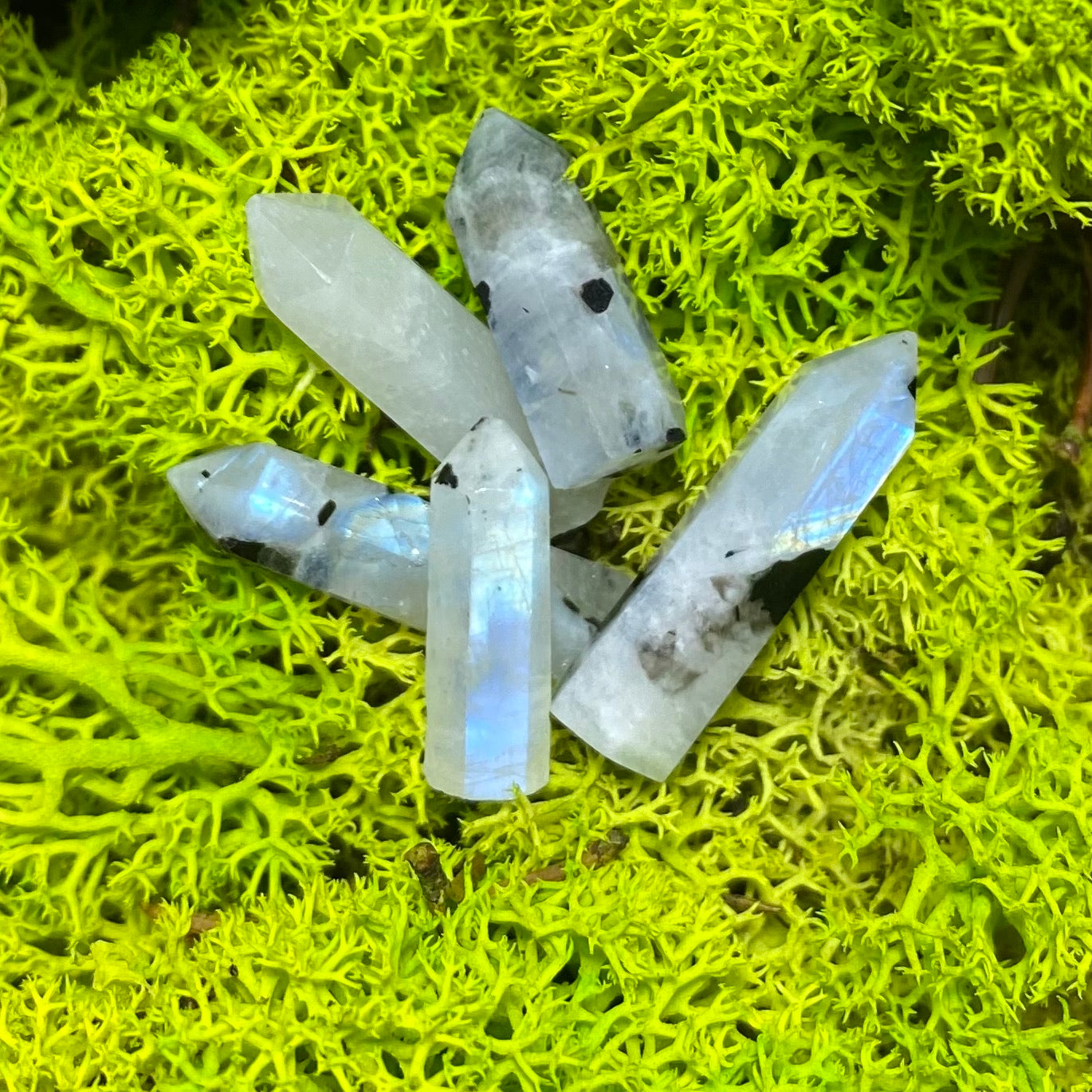Rainbow Moonstone Hand-Cut Single Termination Points / Mini-Towers