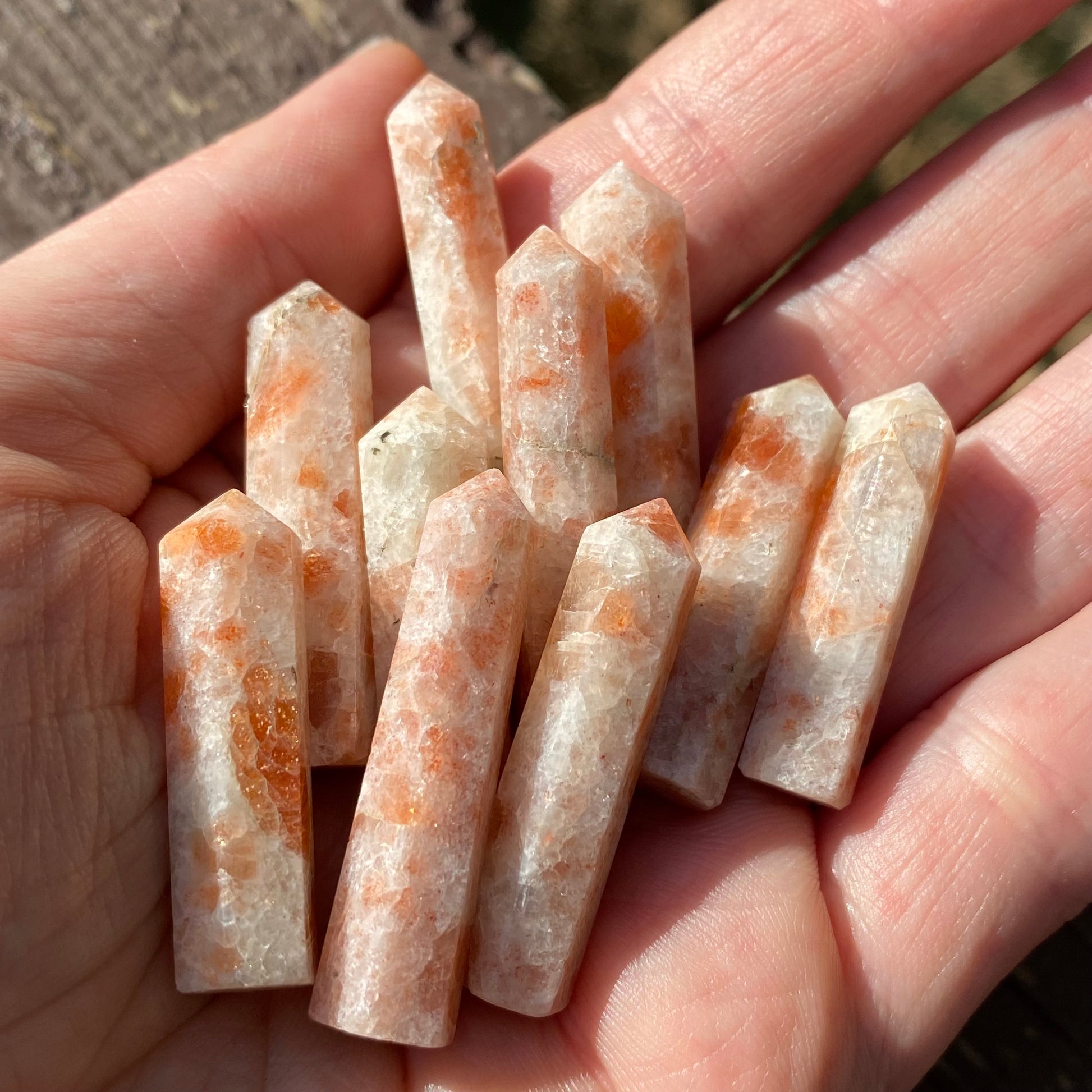 Sunstone is an incredible healing stone of joyful positive light, encourages self-empowerment and independence, clears and energizes chakras These mini towers are a great choice for altar work and crystal gridding.