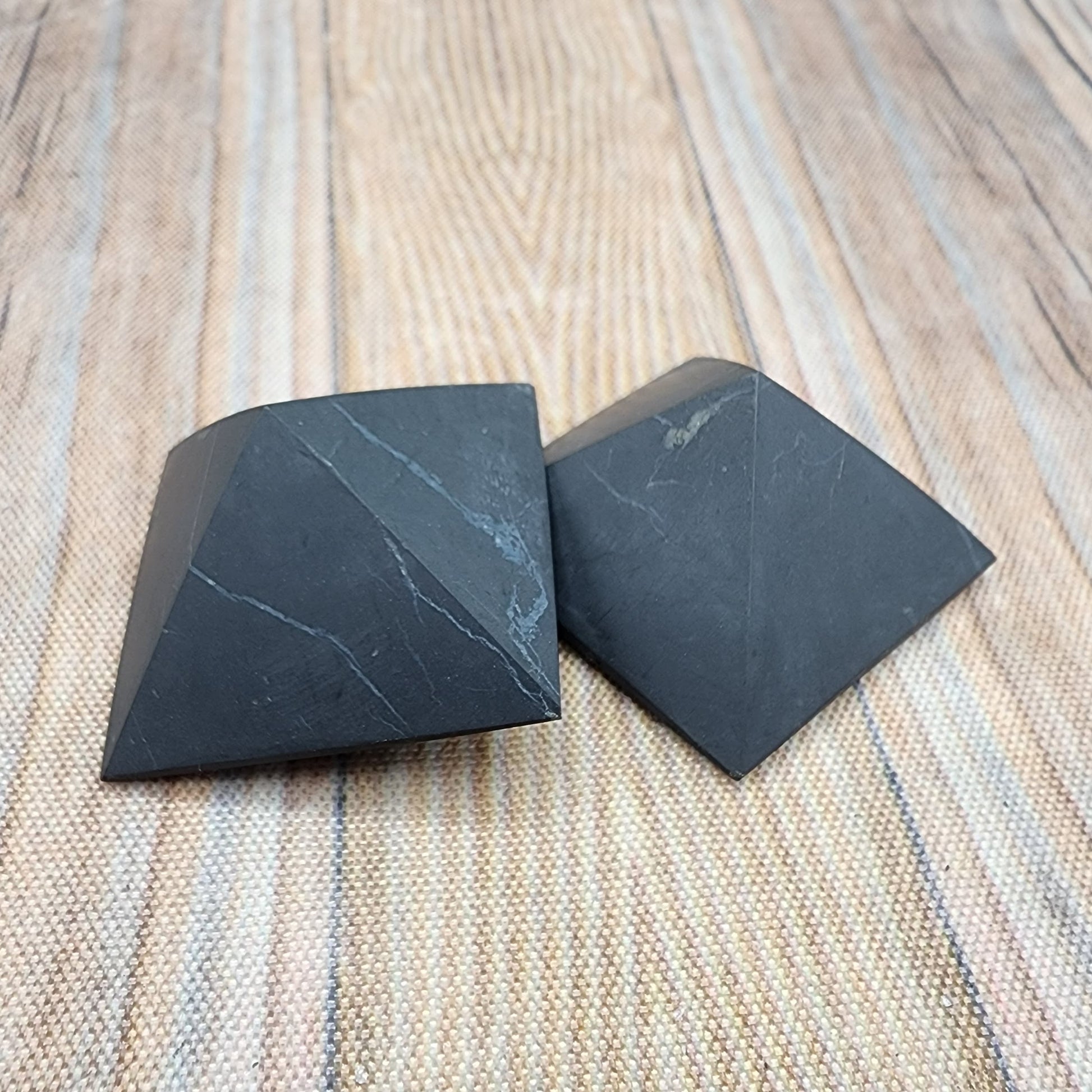 Shungite is a powerful protection/shielding/grounding stone. These little pyramids are approximately 1 inch on each side.